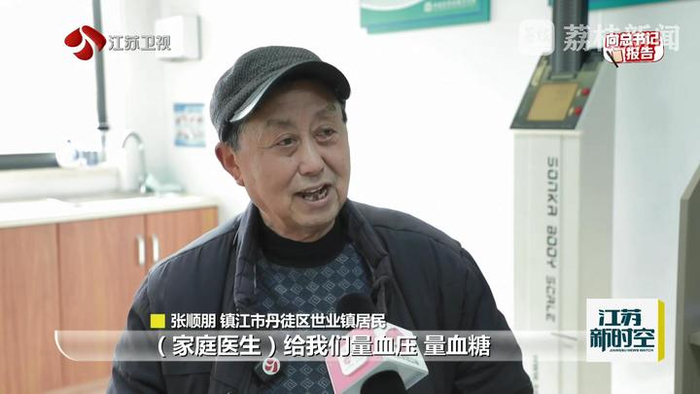 镇江市丹徒区世业镇居民张顺朋说:“家庭医生给我们量血压、量血糖,每个人都像这样。好比说血压高了,他就要叫我们吃什么药,怎么吃法。我们都是小病,这个卫生院方便。”