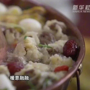 在甘肃省临夏市,河州暖锅是当地人“舌尖上的乡愁”。层层码放在铜锅中的荤素食材,经过长时间慢炖,鲜香入味,一口下去,暖胃又暖心。