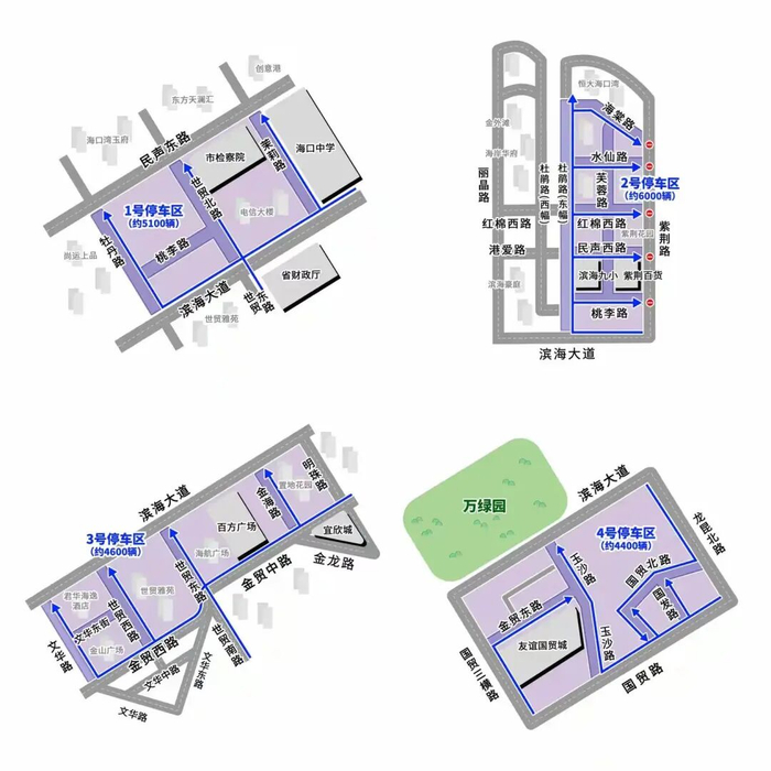 龙华片区绕行海秀快速路、海秀中路、海秀东路等道路;
