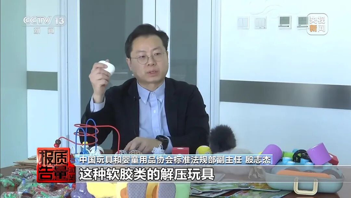 中国玩具和婴童用品协会标准法规部副主任 殷志杰:这种软胶类的解压玩具,不符合新国标要求是相对最集中的。发泡类的塑胶玩具、木质玩具、纸质玩具,还有毛绒玩具,也都有发现不符合新国标要求的情况。