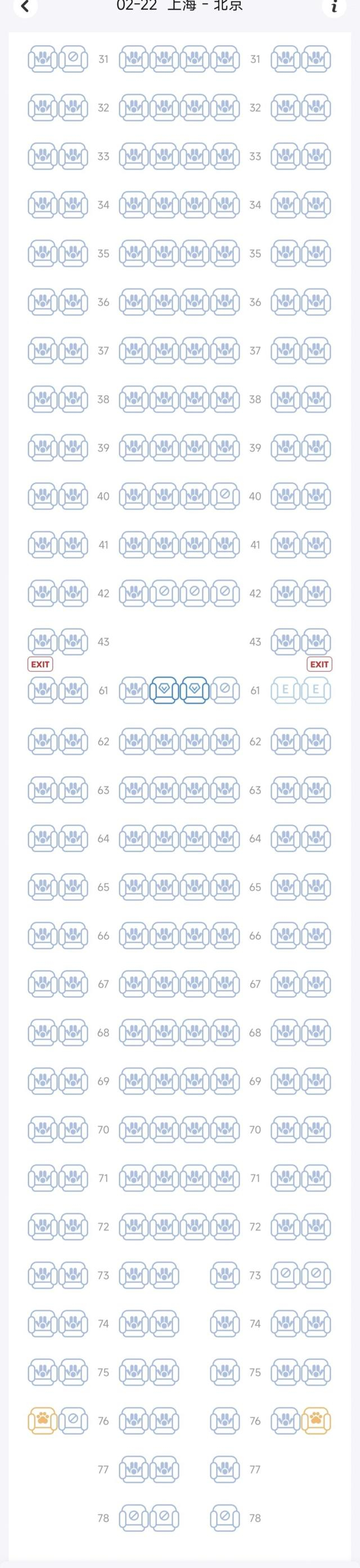 徐先生购买了一趟大年初六晚上9时05分从上海启程飞往北京的东航MU5185航班。当天上午,徐先生打开官方在线值机小程序,准备挑选座位,结果发现,230个座位中,有228个座位已无法选择,绝大多数座位上呈现小人图标,即已被人选座,仅有两个显示钻石图标的座位还可选择。但是徐先生点击发现,如果要选择这两个座位中的一个,需要支付2000多积分,由于他账户积分不足,竟无座可选。
