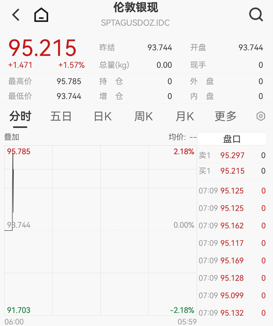 现货白银站上95美元/盎司大关,盘初涨超2%。