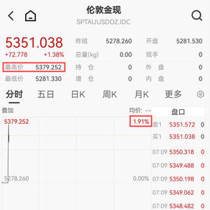 3月2日早间,现货黄金开盘大幅上涨,盘初逼近5380美元/盎司,涨近2%。
