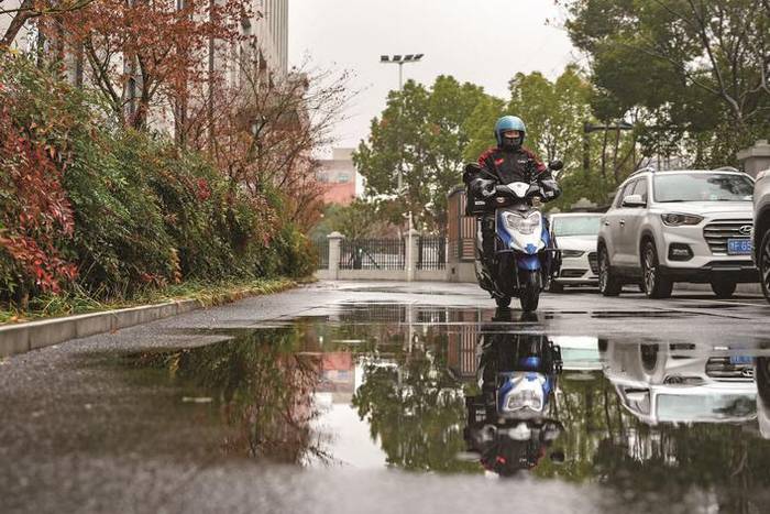 冬雨淅沥,在嘉兴海宁街头,顺丰同城快递员司永平正小跑着派送一份蛋糕。“蛋糕怕磕碰,得加倍小心。”司永平加快脚步。呼出的气息在头盔下凝成白雾,手里的配送终端接单提示音不时响起,对他而言,下雨天意味着更密集的订单、更紧凑的节奏。