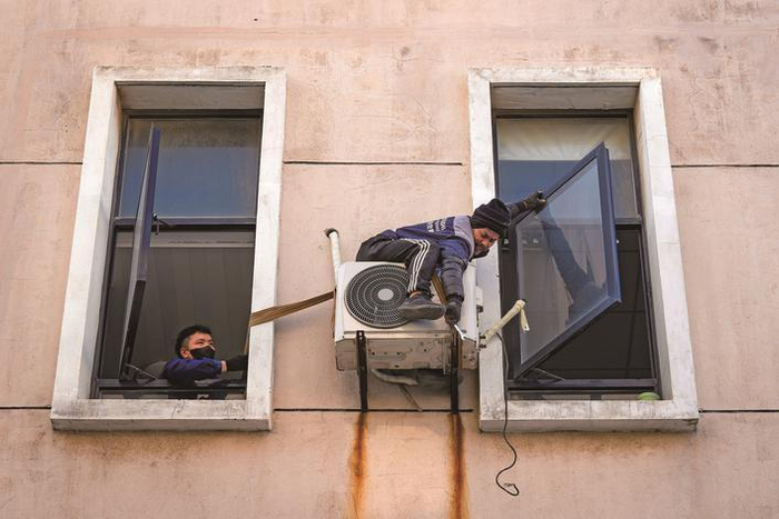 司永平空余时间兼职维修空调,高空作业充满了危险。