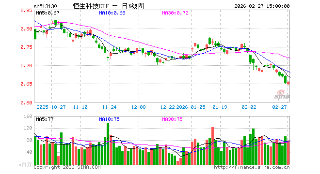 2月27日恒生科技ETF(513130)份额增加5.56亿份,最新份额755.99亿份,最新规模497.07亿元