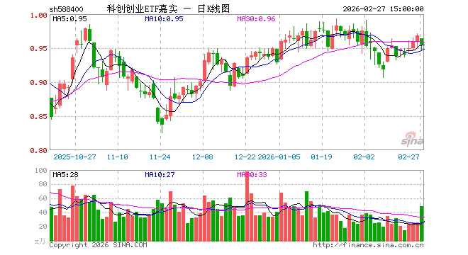 2月27日科创创业ETF嘉实(588400)份额减少1800.00万份,最新份额16.51亿份,最新规模15.74亿元