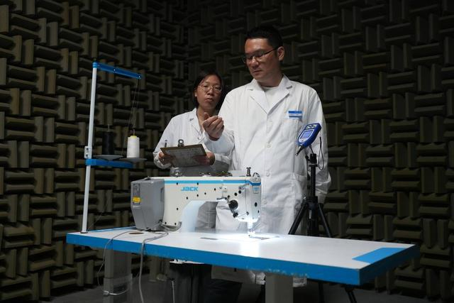在位于浙江台州的杰克科技股份有限公司总部,实验室工程师在半消音室检测智能缝纫机噪声(2025年7月17日摄)。位于浙江台州的杰克科技股份有限公司是一个从家用缝制设备起家的民营企业,通过不断的科技创新、专利积累、国际化并购等,成为全球智能化服装装备行业的领军者。新华社记者 翁忻旸 摄