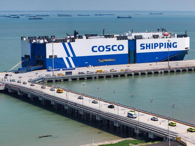 2025年9月16日,在江苏太仓港,装载3600余辆商品车的“玉衡先锋”号即将启程前往东南亚(无人机照片)。新华社记者 李博 摄