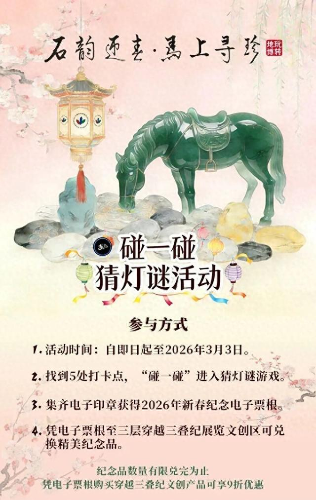 “石韵迎春 马上寻珍”,中国地质博物馆将地质科普与元宵猜谜结合,在馆内设置打卡点,让你 “碰一碰” 解锁灯谜,集章兑奖,感受石与灯的奇妙碰撞。