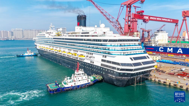2月28日,“理想”号邮轮完成坞修及保养后准备驶离(无人机照片)。 2月28日,“理想” 号邮轮完成常规坞修及保养任务,驶离中国船舶集团青岛北海造船有限公司码头。据悉,“理想”号邮轮是来自意大利的10.3万总吨邮轮,2025年12月24日进场开展常规坞修。 新华社发(张进刚 摄)