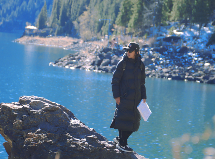 鲁英俊在天山天池参与拍摄短剧(鲁英俊提供)