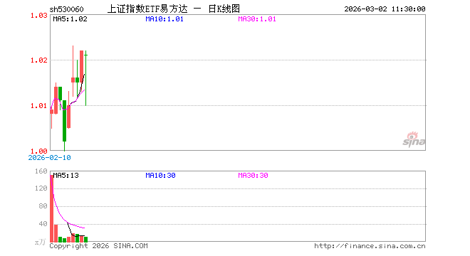 上证指数ETF易方达(530060)跌0.10%,半日成交额1113.35万元