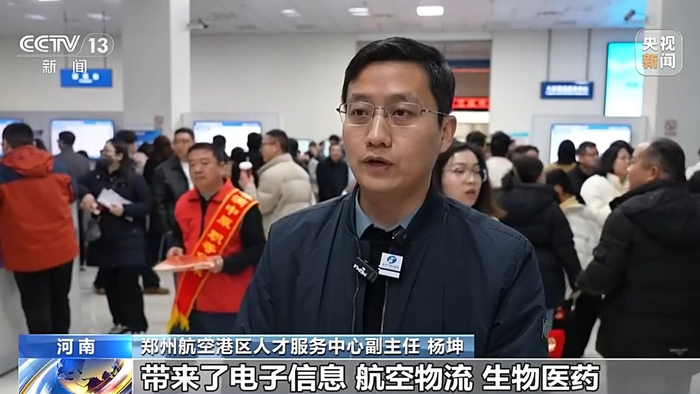 郑州航空港区人才服务中心副主任 杨坤:带来了电子信息、航空物流、生物医药、智能制造等6000多个优质岗位,其中重点筛选了一批AI应用、机器人相关热门岗位,精准贴合港区数字经济和智能产业发展方向。