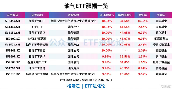 “三桶油”历史首次集体收涨停,标普油气ETF、石油ETF等ETF涨停
