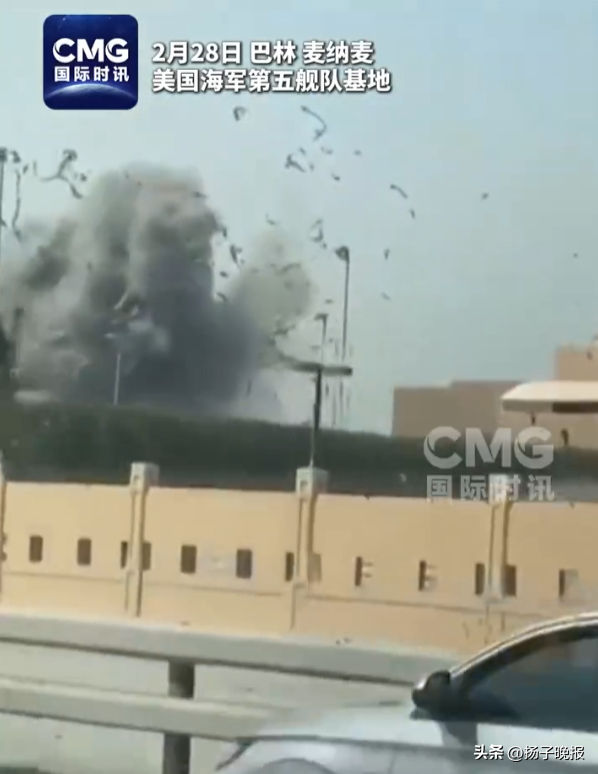 伊朗导弹击中美第五舰队总部瞬间画面曝光,美海军第五舰队总部遇袭前后卫星图公开