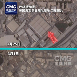 据CCTV国际时讯,路透社今天(3月2日)发布了位于巴林的美国海军第五舰队总部遭伊朗导弹袭击前后的卫星对比图。