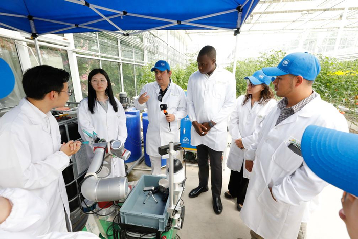 2024年5月22日,“中国—FAO(联合国粮农组织)南南合作拉丁美洲和加勒比地区农村生计改善和粮食体系转型能力建设活动”学员赴江苏省农业科学院开展交流。新华社发(江苏省农业科学院供图)