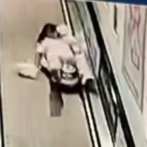 女子怀抱五个多月婴儿站在扶梯上,被身后玩具车撞倒,怀中婴儿也摔倒在地,头部多处受伤!已报警,目前已经交由法院处理
