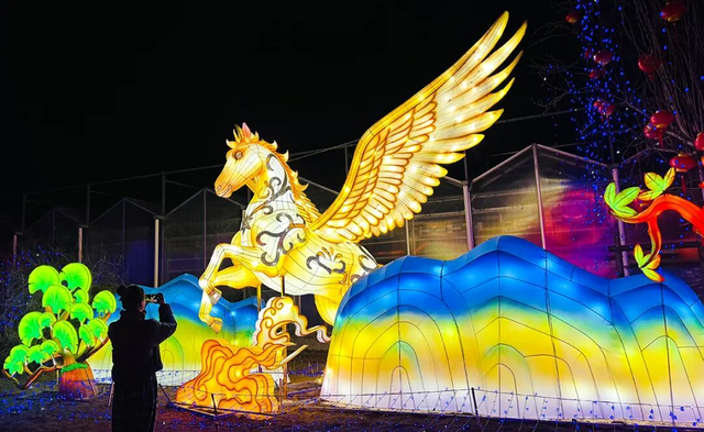 来到北京国际鲜花港,数千盏彩灯流光溢彩,十二花神主题灯组意境绝美,国风韵味十足,是汉服爱好者的必打卡地。