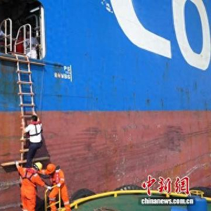 “悬梯有7米高,千万要注意安全!”引航员符峰一再提醒记者,攀爬引水梯要抓紧,“今天天气不错,要是在风浪中引航,两艘船会相互碰撞,引水梯大幅摇晃,稍有不慎便可能坠入海中或被船挤压受伤。”