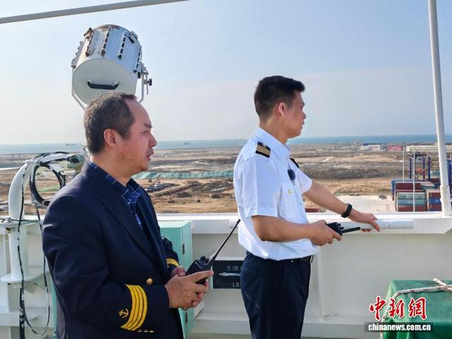“侧推停”“侧推半速向左”“微速后退”……林宏品走到驾驶室外的指挥平台,他探出身子观察船舶姿态,手持对讲机发出指令。经过反复调整,16时45分,“新香港”轮稳稳靠泊。