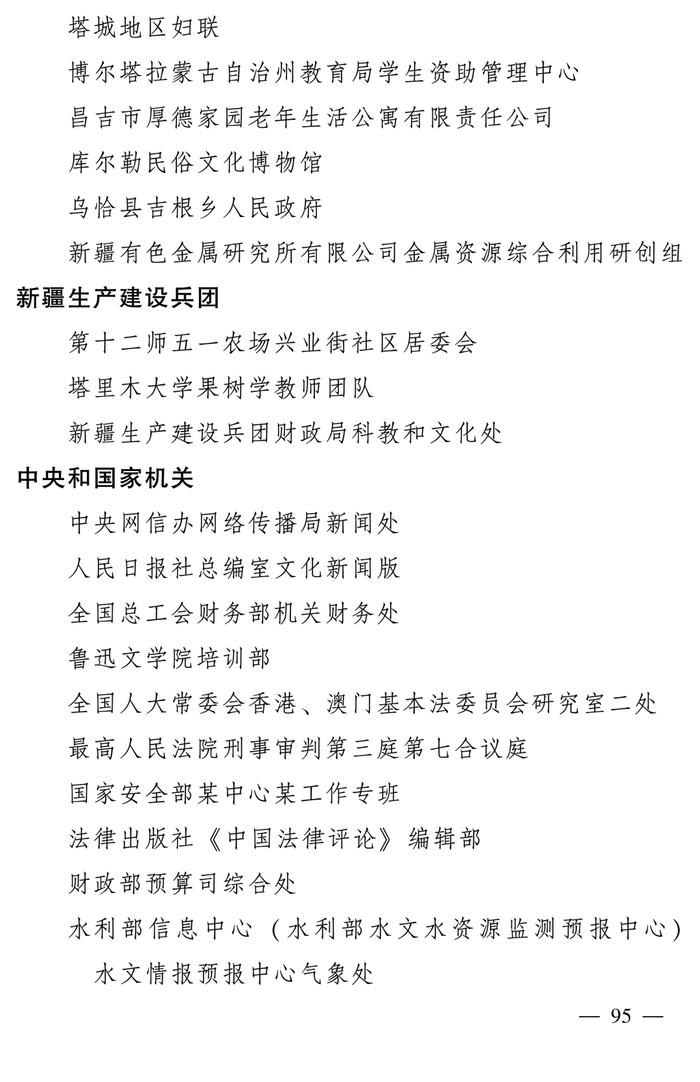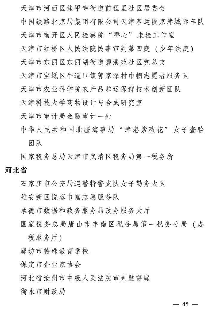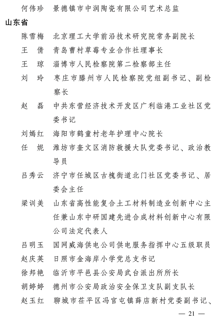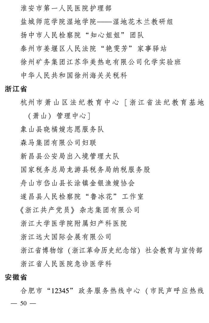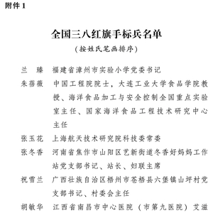 全国妇联决定,授予兰臻等9人全国三八红旗手标兵称号,授予阮祥燕等598人全国三八红旗手称号,授予中国人民抗日战争纪念馆社会教育部等400个单位全国三八红旗集体称号,授予首都医科大学附属北京同仁医院耳鼻咽喉头颈外科等600个单位全国巾帼文明岗称号。