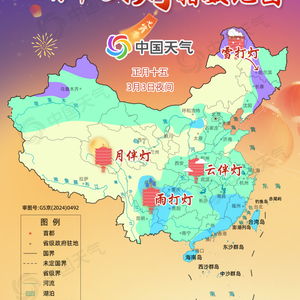 中国天气网气象分析师孙倩倩介绍,今年元宵之夜,我国雨雪范围不大,大部适宜外出赏花灯。不过,中东部以多云或阴天为主,可同时赏灯赏月的区域不多,仅青海、西藏、甘肃等地有望体验“月伴灯”的浪漫。