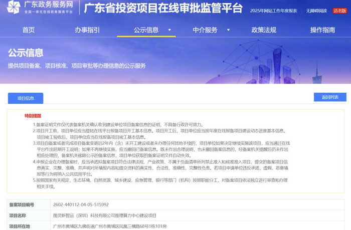与此同时,位于大湾区核心引擎的广州黄埔区也迎来了“图灵新智运(深圳)科技有限公司推理算力中心建设项目”。该项目总投资约9.5亿元,预计将于2026年内快速建成并投入使用。