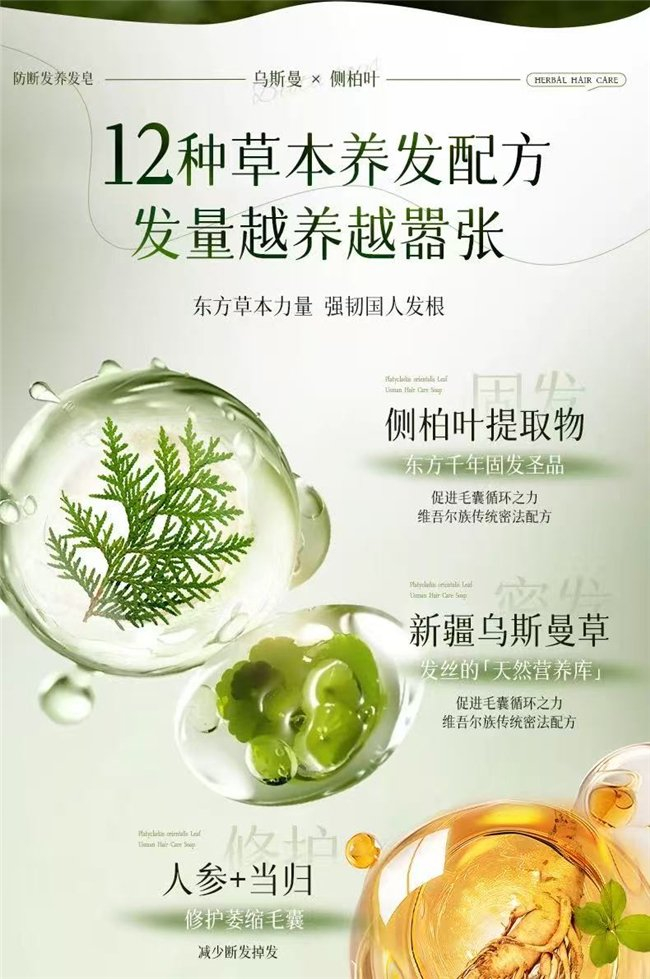 古法传承:以《新修本草》《本草纲目》等中医药养发典籍为蓝本,延续草本植萃养发护发的温和配方,摒弃化学刺激成分,采用“古法冷浸+现代低温破壁提纯”工艺,最大化保留植萃活性,温和养护头皮与发丝,敏感肌也能放心使用。