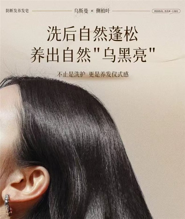 组合使用逻辑清晰:日常可采用“交替使用”模式,油头人群可早上用侧柏叶+乌斯曼草防断养发皂快速清洁控油,开启清爽一天;晚上用何首乌黑灵芝五黑乌发皂深层滋养,夜间集中修复毛囊与发丝;脱发+白发双重困扰人群,可每周使用侧柏叶款2-3次、乌发款2-3次,兼顾防脱与乌发,8周即可实现“掉发减少、白发变浅、发丝亮泽”的多重效果。