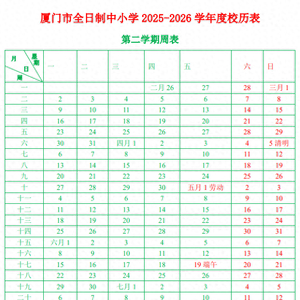 以福建厦门的校历为例,2026年春季学期2月26日正式上课,7月4日左右放暑假,总时长约20周,但减去清明、五一、端午假期,实际教学天数不到90天。