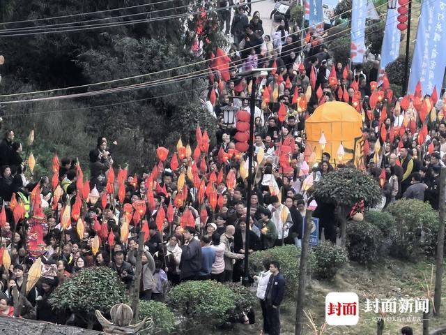 “我是刷短视频看到的,感觉像《千与千寻》里的场景,特意开车带家人过来看看。”重庆游客陈先生把车停在村外的临时停车区,眼里满是新奇,这是他第一次见到这般原生态的民俗热闹。