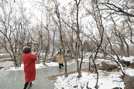 昨夜至今日9时,天津迎来小到中雪。皑皑白雪如约而至,为津城披上银装,杨柳青古镇、人民公园、绿水园等景点展现冰雪画卷,尽显北国冬日韵味。