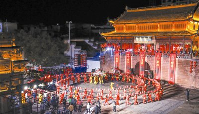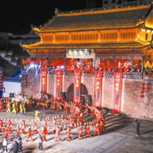 安徽休宁: 板凳龙舞状元城 流光溢彩迎元宵
