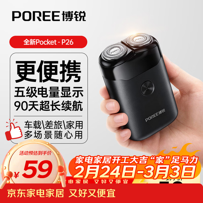 飞科博锐剃须刀京东专享,满1元9折仅59.31元