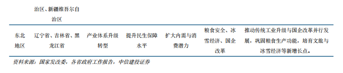 东北地区GDP目标区间在4.5%-5.0%,总体以“求稳”为主。增长引擎主要来自特色消费与政策支持,包括冰雪旅游带动的服务消费,以及国家在粮食安全和老工业基地振兴方面的持续倾斜。政策关键词如“维护国家五大安全”“冰雪同梦”“央地合作”等,体现出东北增长结构与国家战略安全目标高度关联。东北地区的增长路径更强调修复与转型,而非高速扩张。