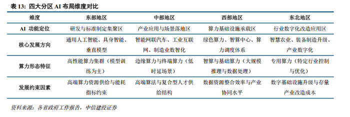 人工智能作为新质生产力的重要组成部分,其区域布局同样呈现分工格局。根据四大分区AI布局维度对比表,各区域在功能定位与算力形态上形成差异。