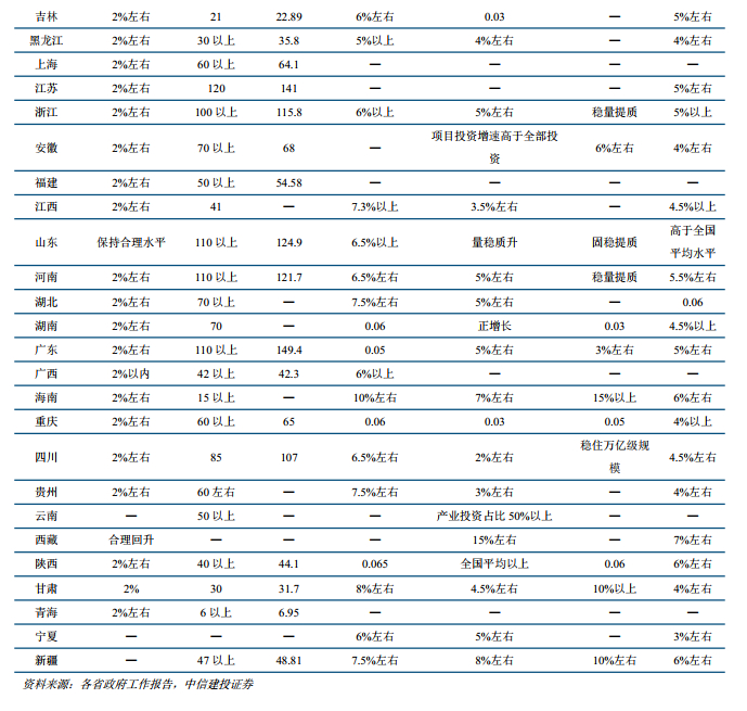 多数省份固投目标设定在3%—8%区间,强调“量稳质升”“提质增效”。与2025年相比,固投目标均值出现明显下调。尤其值得关注的是,重点化债省份(如贵州、辽宁、天津)的目标普遍偏低,反映出在财政约束和债务风险防控背景下,依赖投资大规模拉动的模式难以为继。少数目标较高的地区(如新疆、海南、内蒙古)则主要依托国家重大战略和自贸港建设等特定支撑。