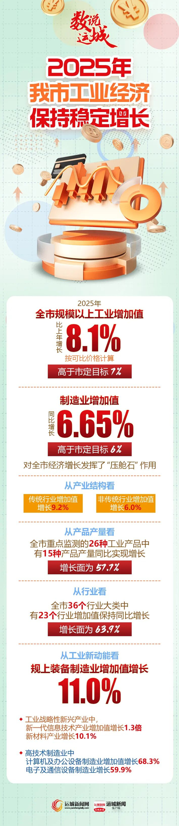 运城日报讯(记者 李星星)2025年,我市坚持以推进新型工业化为纲领,以打造重点产业链、培育特色专业镇为引擎,实施传统产业改造提升、新兴产业培育壮大、未来产业前瞻布局“三大行动”,加快培育和发展新质生产力,不断推动全市工业高质量发展。