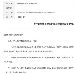 事实上,这是时隔五年乌鲁木齐银行第二次因基金销售违规被监管点名(上次发生在2021年1月,因部分分支机构负责人无相关资格)。相较而言,此次处罚涉及5项违规,显示出其合规管理体系存在多方面缺陷,同时也体现监管实践更趋向“精细化、穿透式”——任一环节疏漏都可能引起监管的关注。