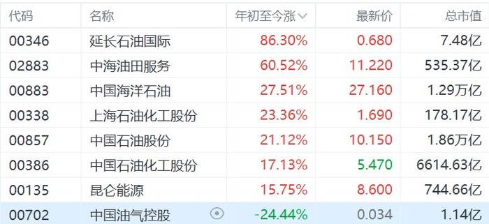 港股异动丨中东大乱,“三桶油”齐创历史新高