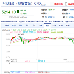 北京时间3月3日下午,现货黄金回落至5300美元下方,现报5294.76美元/盎司,日内跌0.5%。