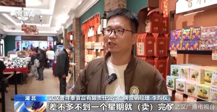 武汉曹祥泰食品有限责任公司品牌营销经理 李均权:每个门店的这批货差不多一个星期就卖完了。未来我们还会再推出4款,希望通过文创形式,让老字号走进年轻人的心里。