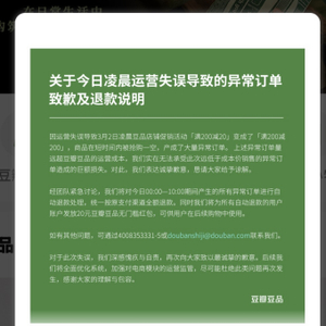 豆瓣豆品称,对于此次失误,其深感愧疚与自责。接下来将全面优化系统,加强对电商模块的运营监管,尽可能杜绝此类问题再次发生。