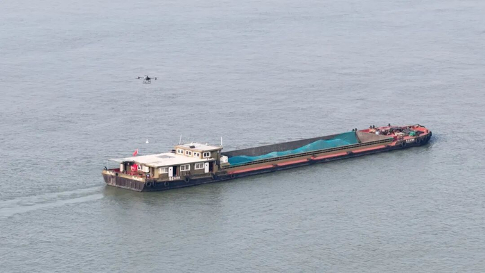 长江汇总经理翟海锋介绍,“汇闪送”就像一个专属的“水上外卖站”,船员只需打开App下单,无人机就能从服务区快速起飞,把货物精准投送到航行中的船舶上。