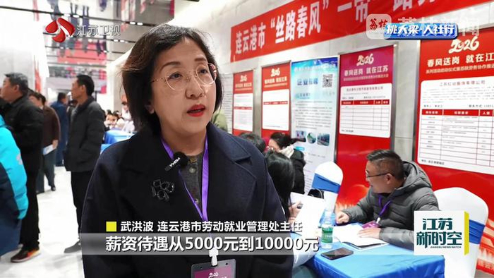 连云港市劳动就业管理处主任武洪波说:“这次我们共带来20家优质企业4000多个岗位,薪资待遇从5000元到10000元。我们还为广大的劳动者提供优厚的待遇,包括年终奖、住宿、餐饮等服务。”