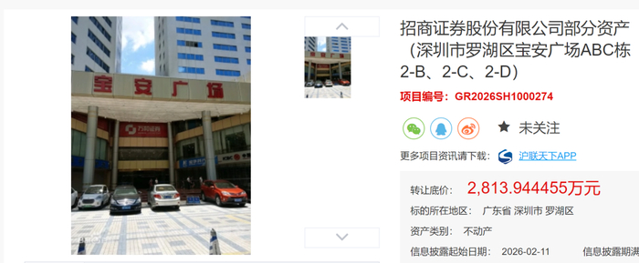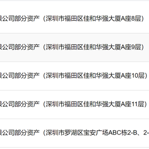 主要涉及佳和华强大厦A座以及宝安广场ABC栋的多处不动产,转让底价合计约1.48亿元,挂牌截止日期为3月17日。