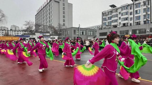上午8时30分,伴随着铿锵有力的锣鼓声,台上镇东明村秧歌队率先登场,秧歌演员们身着五彩服饰,手中彩扇翻飞,整齐的步伐将秧歌的豪迈奔放与灵动柔美展现得淋漓尽致。