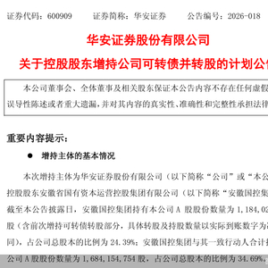北京商报讯(记者 刘宇阳)3月3日,华安证券发布公告表示,公司控股股东安徽省国有资本运营控股集团有限公司计划自公告披露日起3个交易日内(3月4日—6日),在上交所系统通过集中竞价或大宗交易购买华安转债并在公司可转债转股期间内转股的方式增持公司股份,累计购买金额不低于1亿元,不超过2亿元,本次购买可转债并完成转股后增持公司A股股份的比例与前次已实施完成的增持计划累计不超过公司总股本的2%。